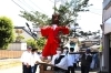 拍子木の音、担ぎ手の掛け声、山車から聞こえるお囃子。5月の空のような清々しい笑顔!