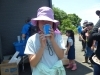 帽子に水筒を持っていざ畑へ。振興センター駐車場には冷たい飲み物も準備され熱中症対策も万全!